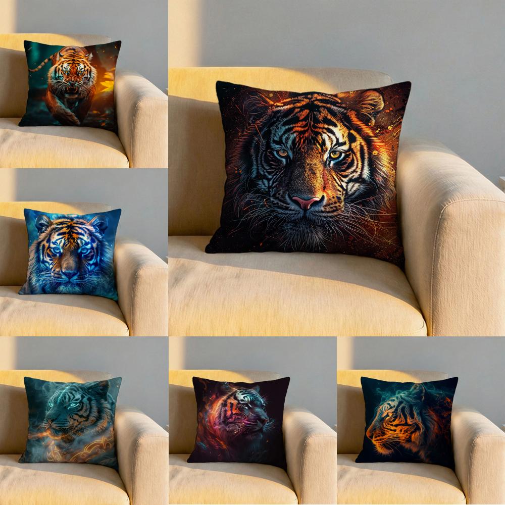 Tiger Animal Print Cushion Cover Soft Reversible Durable Pillow Cover MultiScene Use for Home Car Daily Comfort
