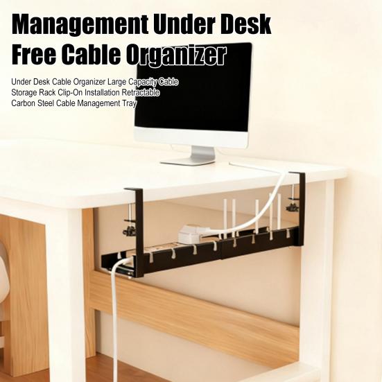 Retractable Length Design: Adjustable from 30.5 cm to 58 cm, this cable organizer adapts seamlessly to different desk widths and under-desk spaces. Its extendable feature ensures compatibility with a variety of setups, offering flexible storage solutions tailored to your workspace dimensions.