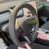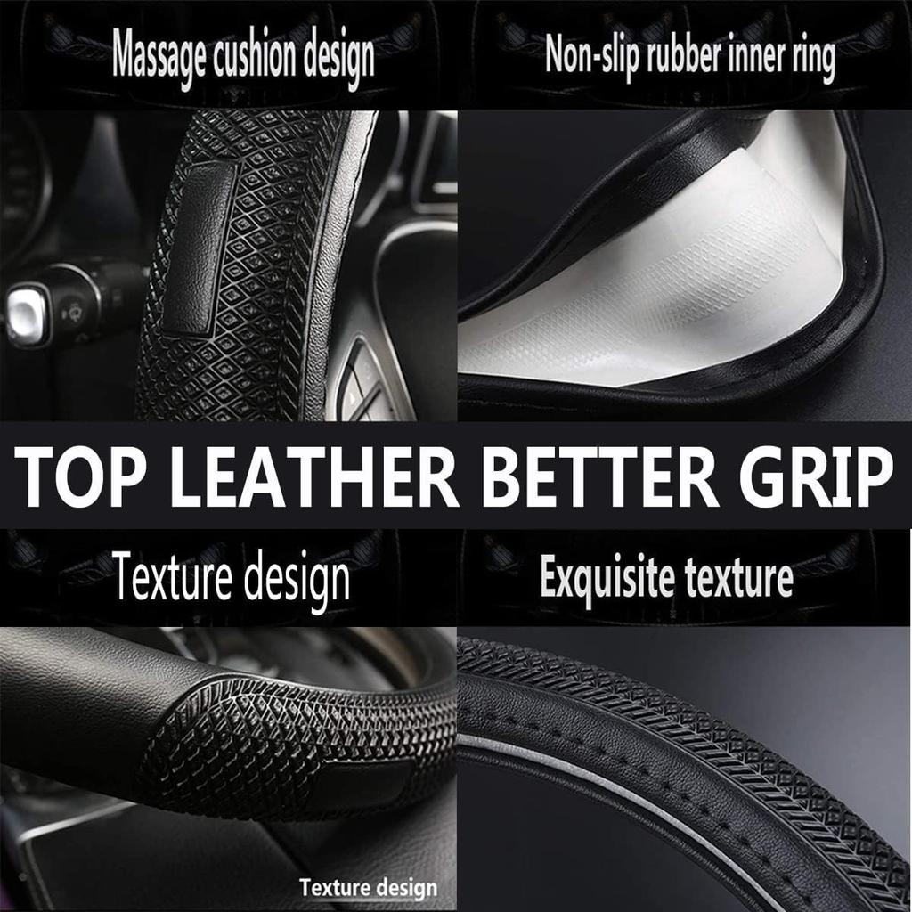 D Shape Steering Wheel Cover,Universal 14.5-15 Inch Car Black Leather Steering Wheel Wrap with Better Sport Grip for Men Women,Fit D Shaped Flat