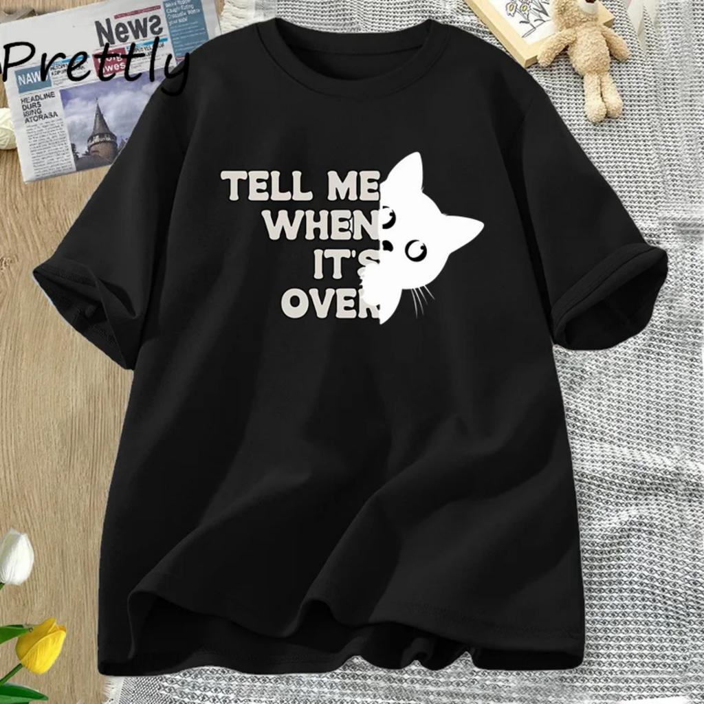 Funny Cat T-shirts Tell Me When It's Over Graphic Tee O Neck Top Summer Short Sleeve Tees Basic Soft T-Shirts Loose Style