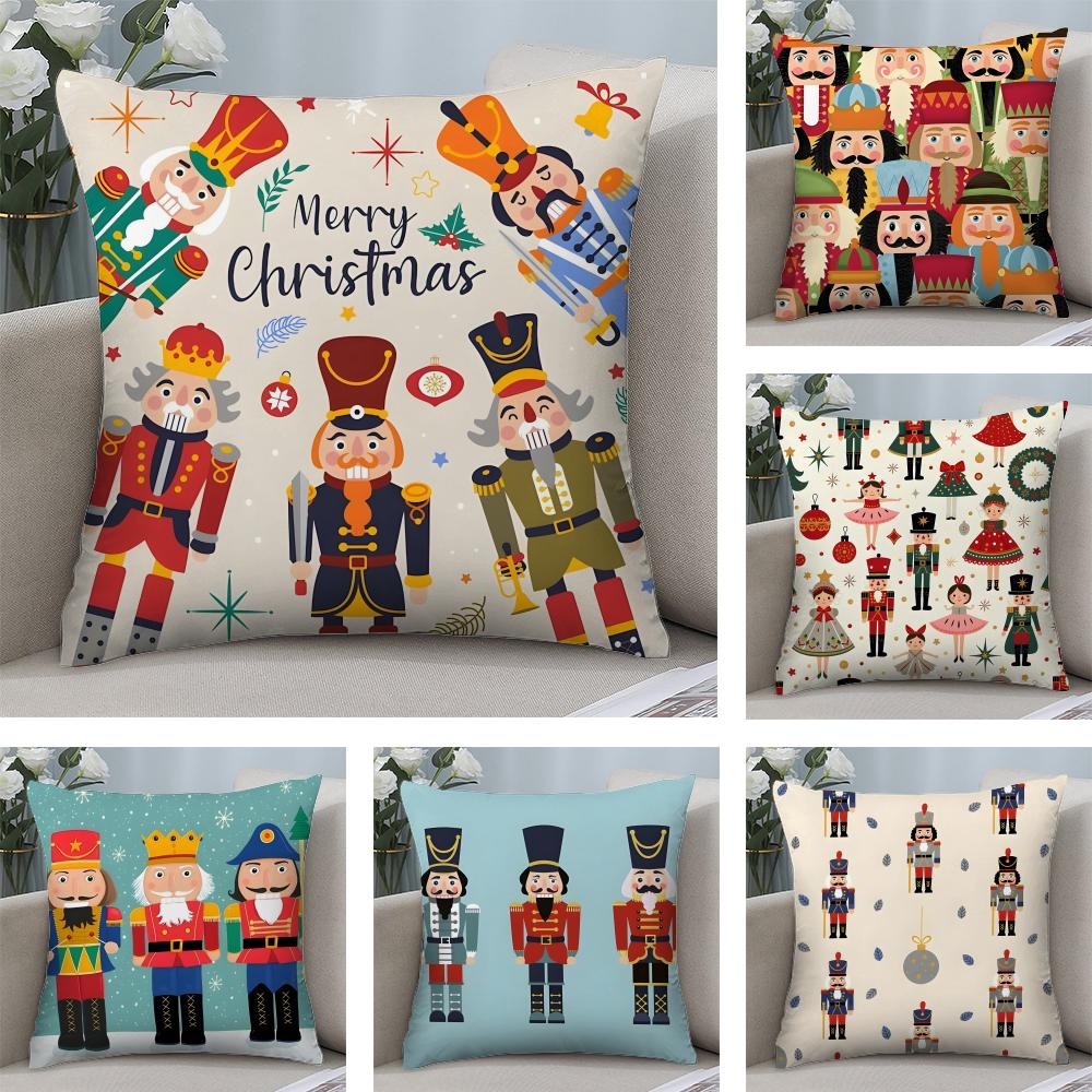 Nutcracker Soldier Christmas Cushion Cover Plush Fabric Soft DoubleSided Printed Sofa Warm Winter Home Child Gift Pillow Case