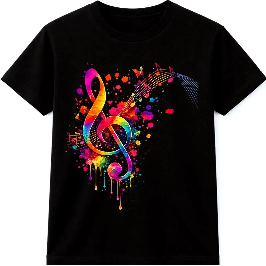 Music Note T Shirt Colorful Treble Clef Splash Art DJ Festival Graphic Tee