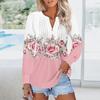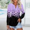 Women's Fashion Puff Sleeves Pleated V Neck Floral Print T-Shirt Tunic Top