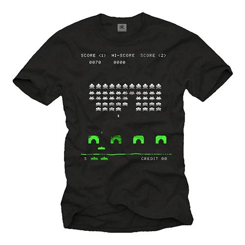 CULT SPACE NERD GAME MEN Shirt WITH OLD SCHOOL INVADERS - SHORT SLEEVE GEEK TEE