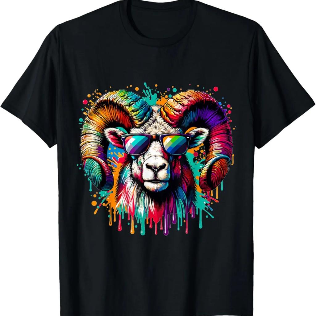 Colorful Cool Bighorn Sheep with Sunglasses Multicolored Art T-Shirt
