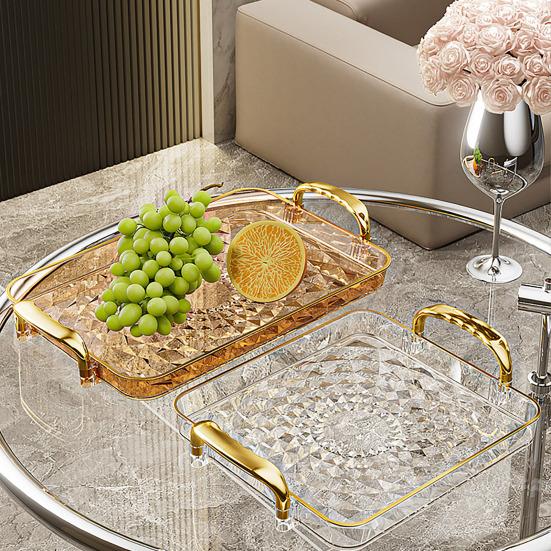 Clear Serving Tray with Handles Multipurpose Fruit Snack Dessert Platter for Home Parties Stackable Decorative Storage Tray Kitchen Organizer