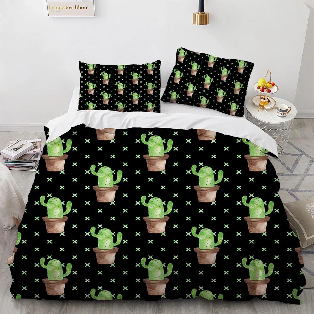 Cactus Beding Soft with Soft Fabric Duvet Cover Sumer Gren Plant Bed Linen Set Nature Soft Duvet Cover Set Bright Dorm Beding Set (Quen
