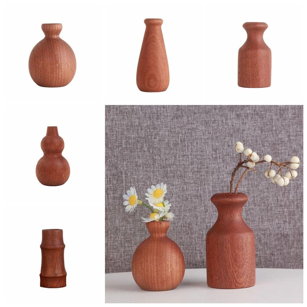 Minimalist Wood Dried Flowers Vase Vintage Style Elegant Solid Wood Pot Small Planter Desk Decoration