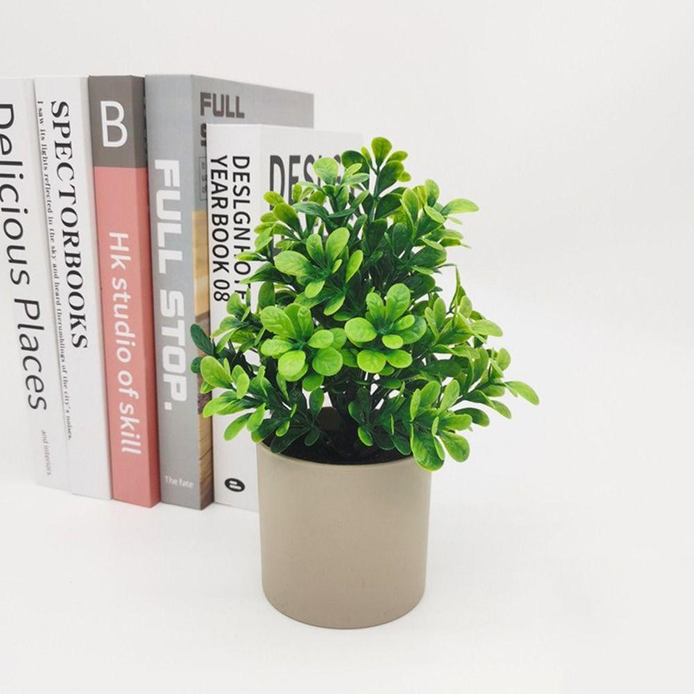Creative Green Leaves Artificial Grass Bonsai Photo Props with Flowerpot Potted Plant Ornament Faux Flowerpotted Gift