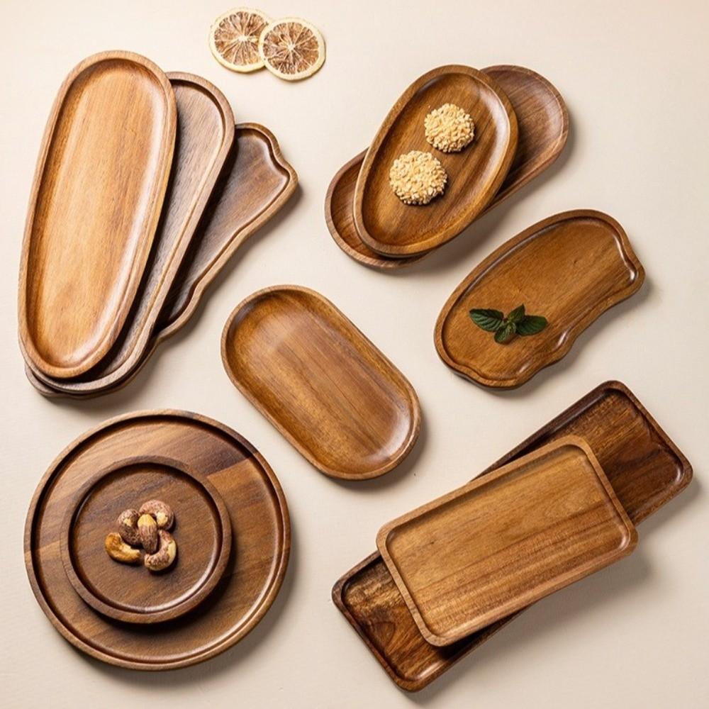 Solid Wood Dessert Plate Japanese Style Irregular Wooden Tray Plate Tableware Heat Resistant Dried Fruit Snack Plate Cafe Use