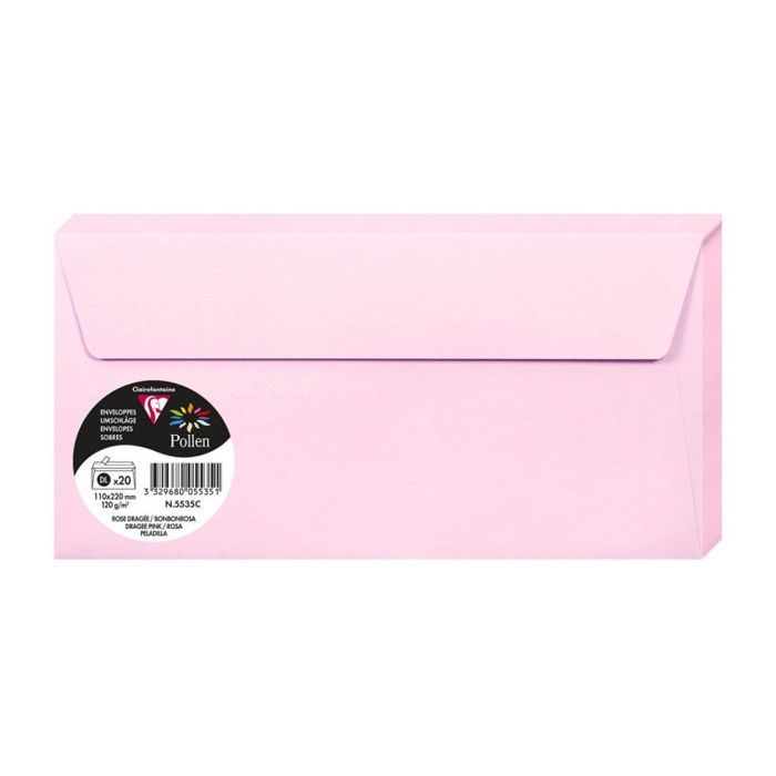 Enveloppe - CLAIREFONTAINE - Pollen - 110x220mm - 120g - Rose dragée - Paquet de 20