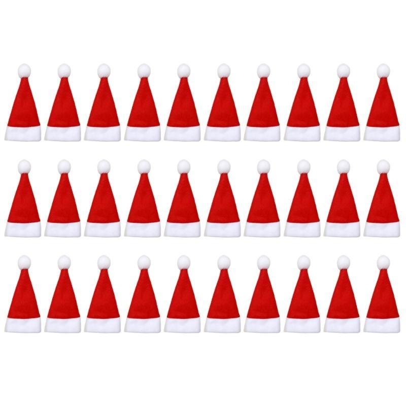 24TE 30pcs Mini Christmas Santa Hats Wine Bottle Decor New Year Gift Kitchen