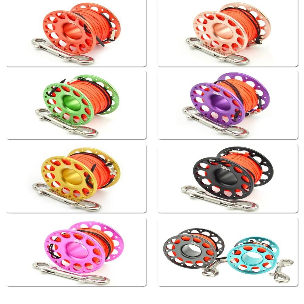 Scuba Diving Aluminum Alloy Spool Finger Reel 15M 30M with Stainless Steel Double Ended Hook for Cave Dive Equipment