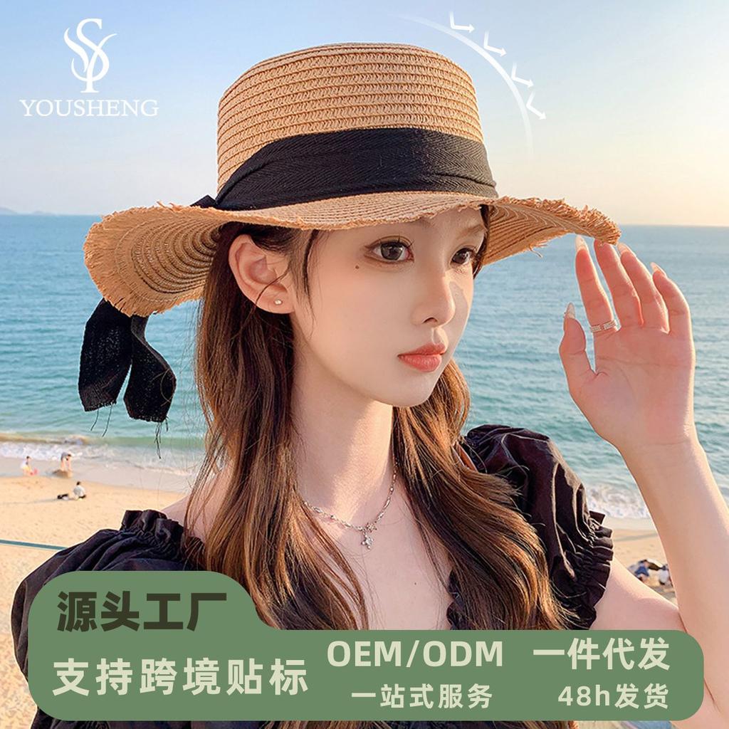 Summer French Flat Edge Beach Hat Seaside Vacation Sun Protection Versatile Top Hat Premium Sunshade Straw Hat Women