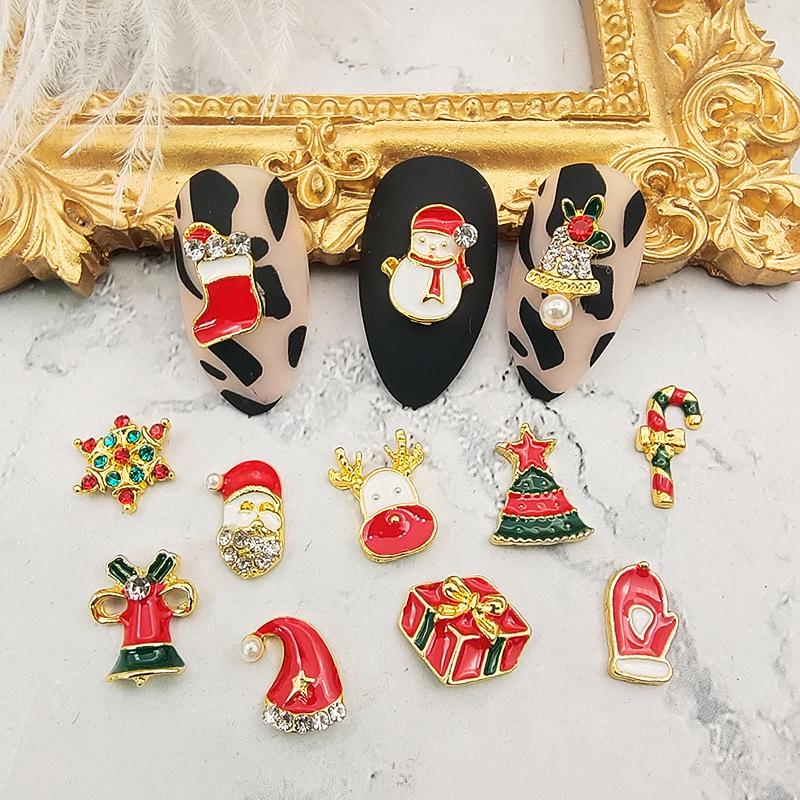 Christmas Nail Art Accessories: Festive Drills & Decorations with Trees, Santa, Deer & Snowman Designs