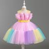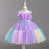 This enchanting dress is perfect for special occasions, crafted from luxurious satin that offers a soft and comfortable feel. The design features a delightful color block pattern, adding a playful yet elegant touch. The airy mesh overlay enhances the princess-like appeal, making it ideal for young fashionistas. With its charming silhouette and exquisite detailing, this dress promises to make any child feel like royalty.