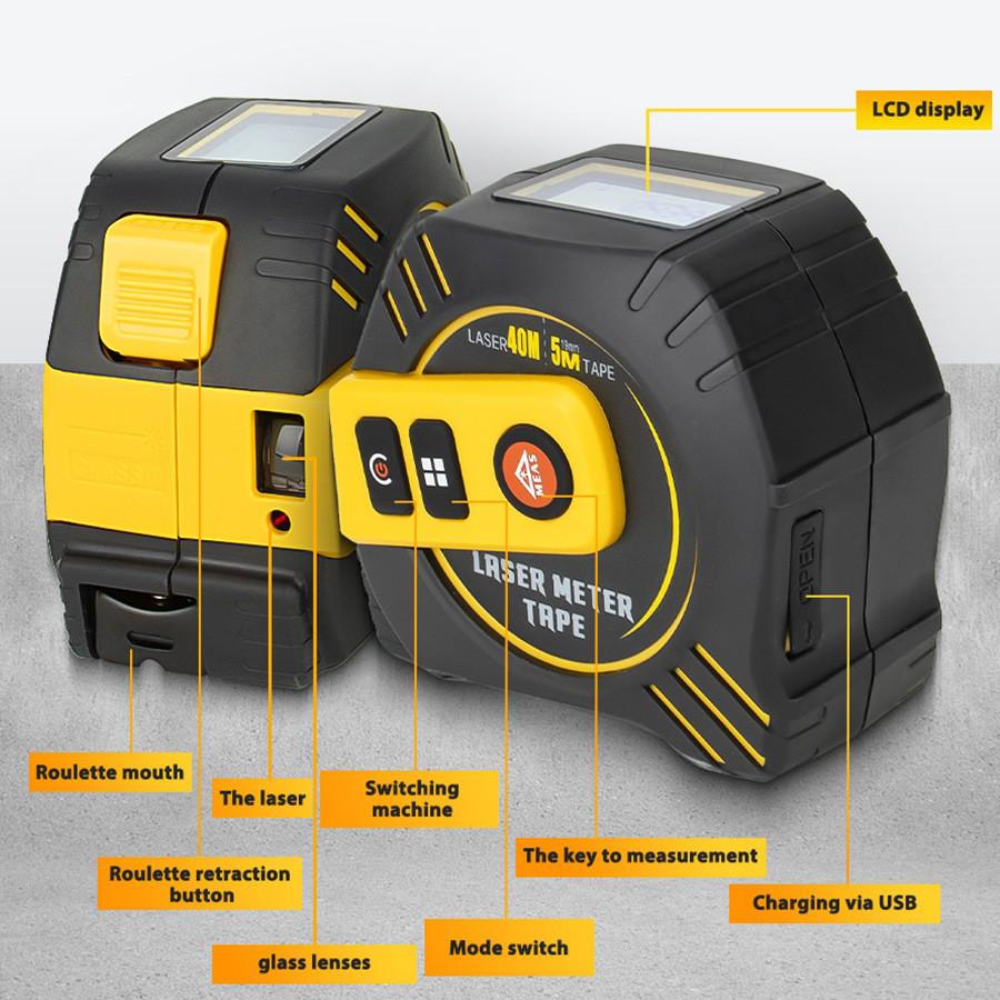 Rechargeable 2-in-1 Infrared Laser Rangefinder & 5m Tape Measure, 40m Electronic Measuring Tape.