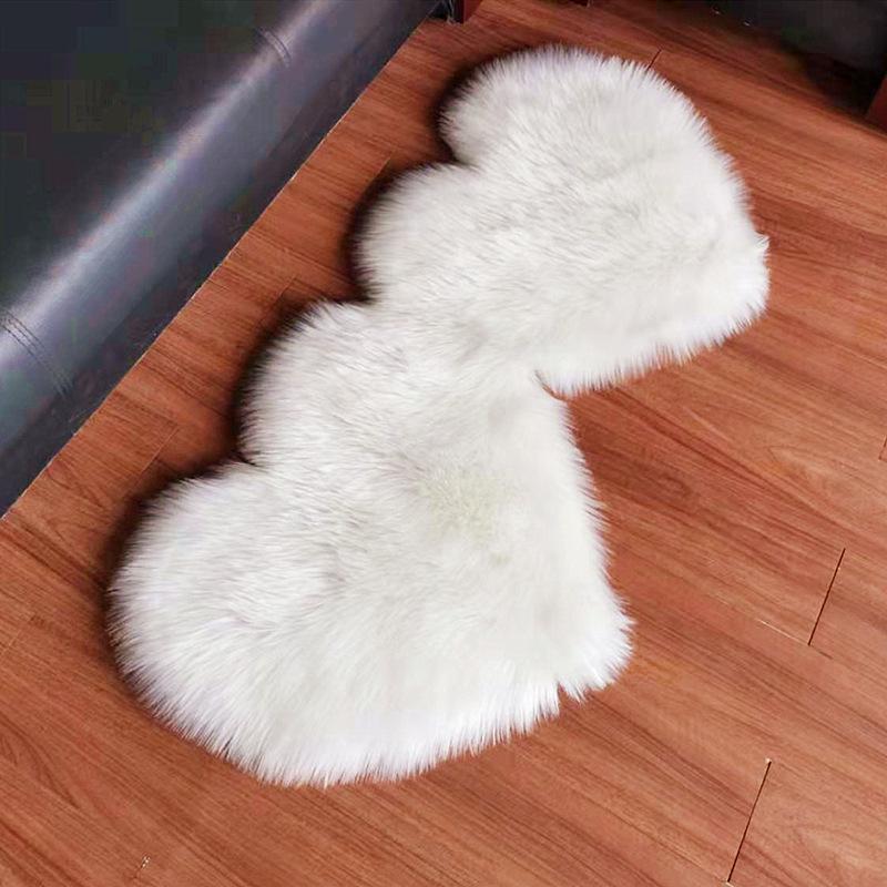 Double Heart Plush Imitation Wool Floor Mat for Living Room or Bedroom