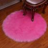 Modern White Plush Faux Wool Round Rug for Living Room or Bedroom
