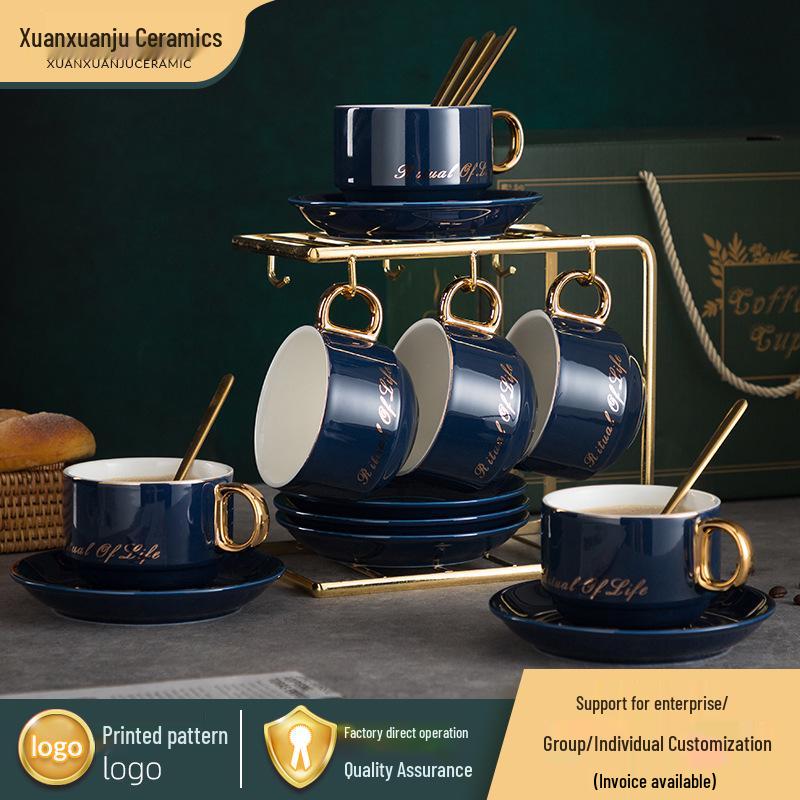 Luxury European-Style Golden Handle Ceramic Coffee Cup & Saucer Set