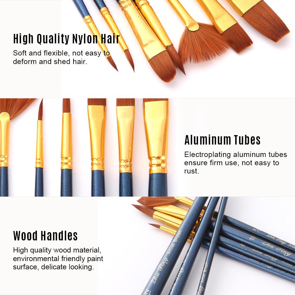 7pcsCelsiusset Art Paint Brushes Set Round & Flat & Filbert & Fan Tips Professional Drawing Paintbrushes Nylon Hair Wooden Handle for Watercolor Acryl