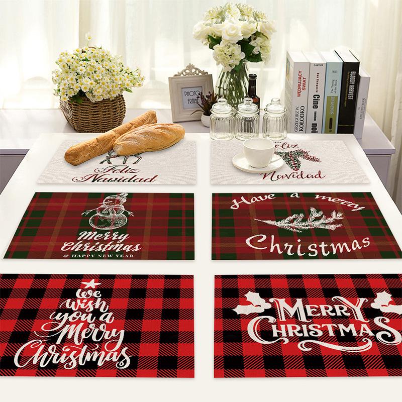 Western Style Stain-Proof Linen Placemat - Heat-Insulating and Decorative Christmas Table Mat
