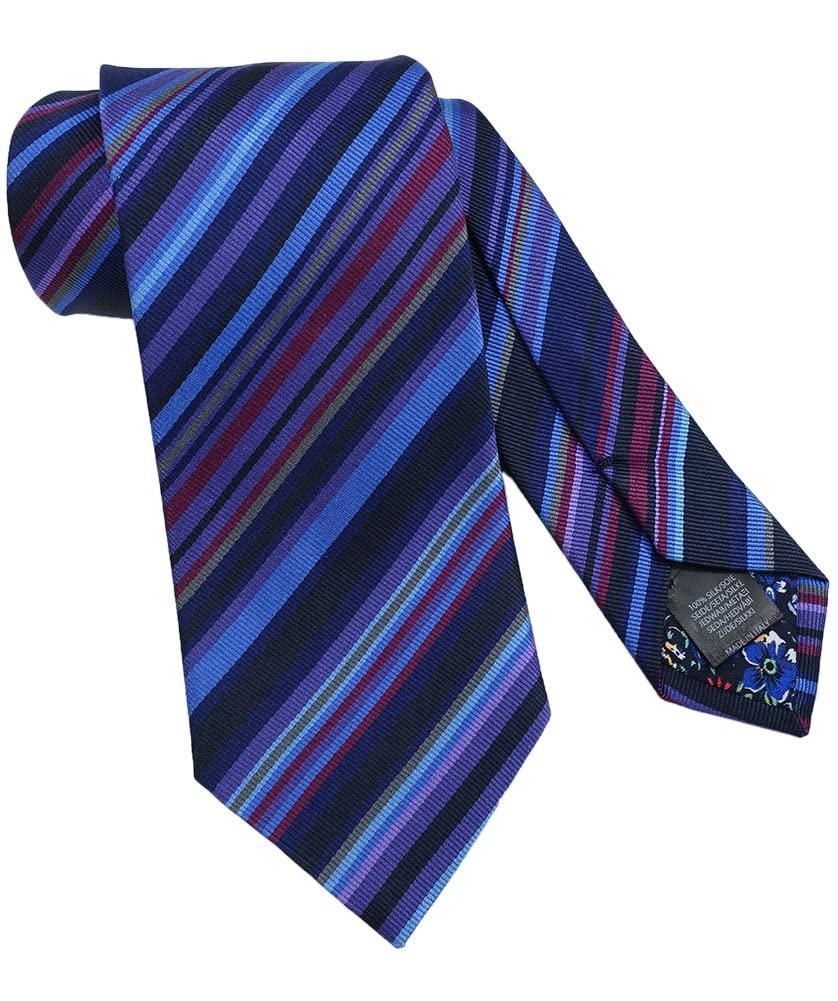 [Brand Necktie Gift Set] Paul Smith Necktie with Ribbon, Paul Smith Case & Shopping Bag (REDROSE Original) PS7 Navy/Lavender Multi-Stripe (Gift, Birth