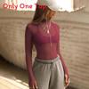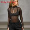 Long Sleeve Mesh Top With Semi High Neck For Streetwear And Party Wear