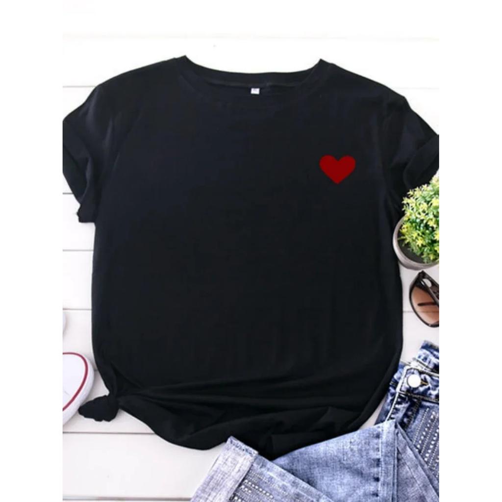 On Chest Little Red Heart Print T Shirt Women Short Sleeve O Neck Loose Tshirt Summer Women Tee Shirt Tops Camisetas Mujer