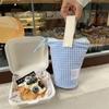 Ctrast Color Women Handle Storage Bag Girls Vertical Pencil Case Portable Pen Holder Retro Plaid Cosmetic Bags Clutch Purse