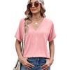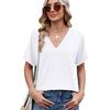 Women's Spring Summer New Arrivals Solid V-Neck Loose Short Sleeve T-Shirt Top