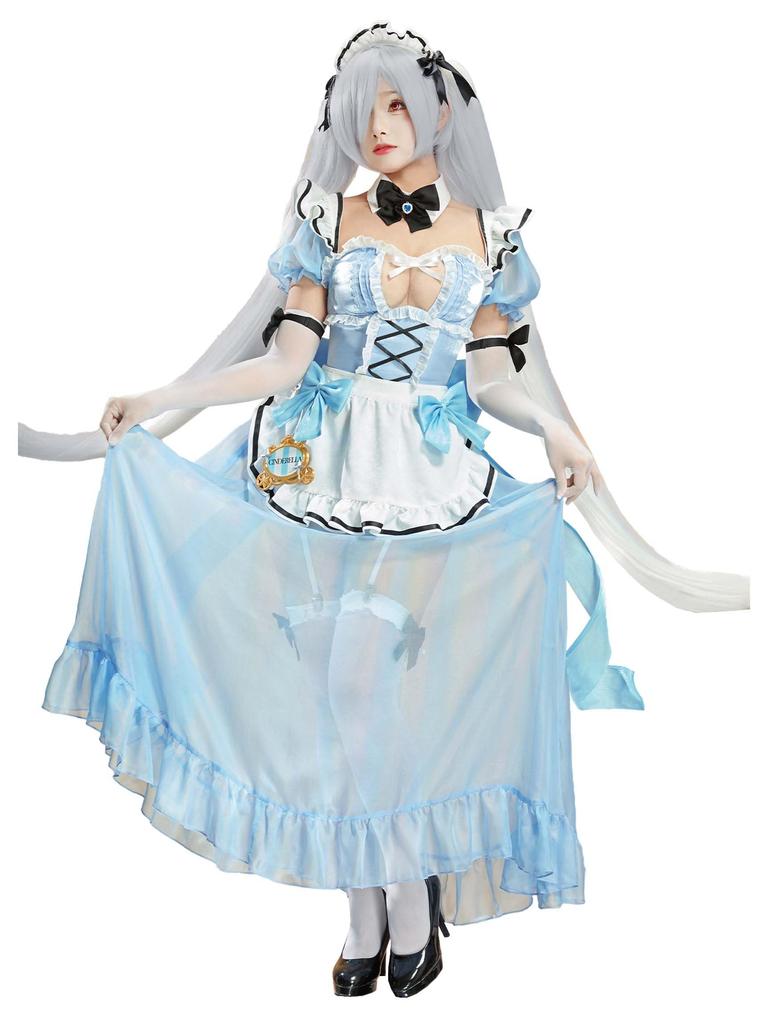 Adult Anime Game Goddess Style Open Chest Princess Maid Dress Cute Adorable Moe Cool Costume Cosplay Fancy Dress Transformation Outfit Set Blue