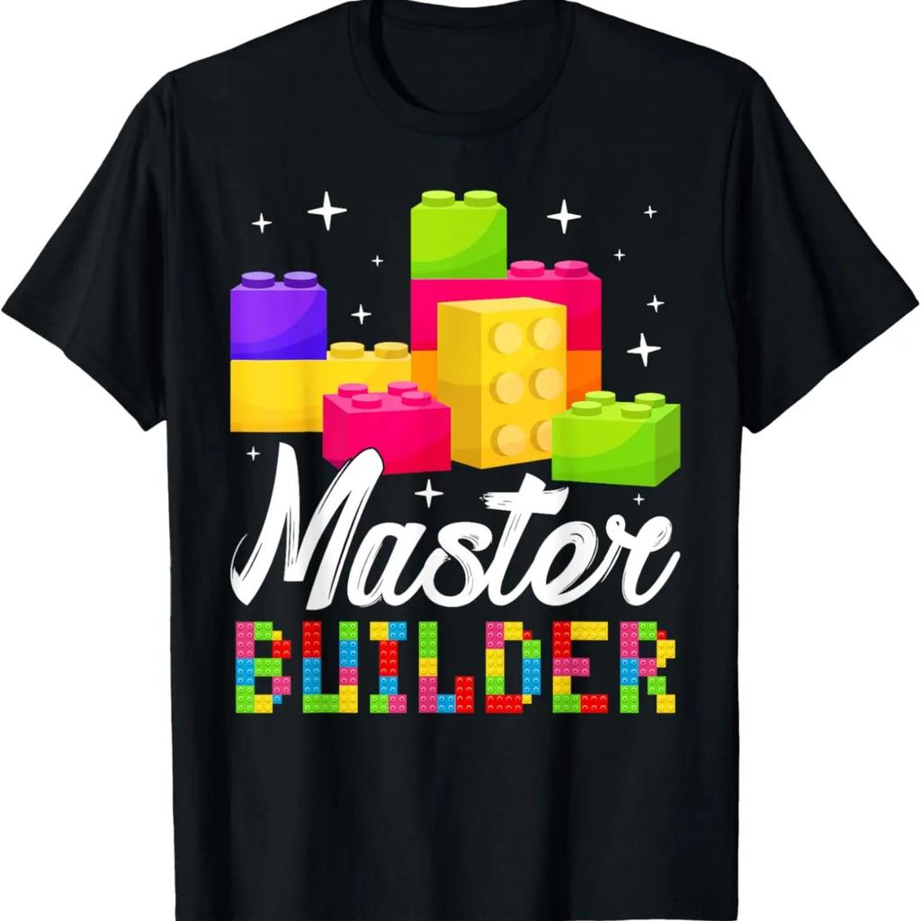 Funny Master Builder Building Block Bricks Lovers Kids Boys T-Shirt