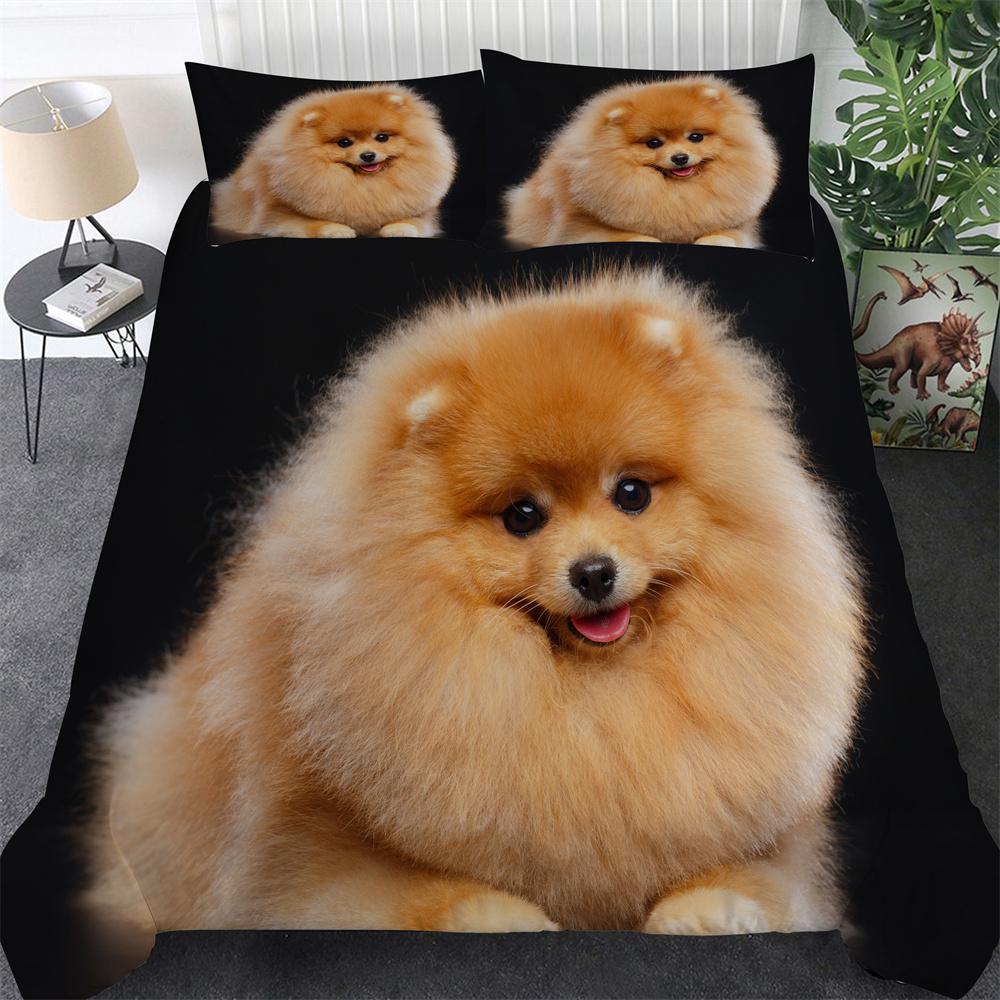 3D Pet Kawai Dogs Soft Duvet Cover Pomeranian Chihua Cavalier Charles Spaniel Dog Soft Duvet Cover Polyester Comfortable Quilt Cover Quen King