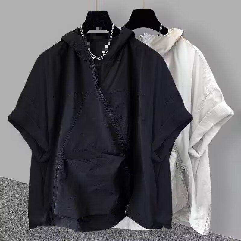 Men's Summer Workwear Short-Sleeve Sweatshirt Solid Color Loose-Fit Relaxed Hooded Sun Protection Jacket