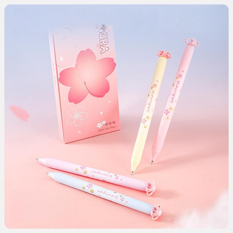 4pcs Sakura Gel Ink Pens Set Cherry Blossom Flower Print 0.5mm Ballpoint Black Color Ink Quick Dry Smooth Writing