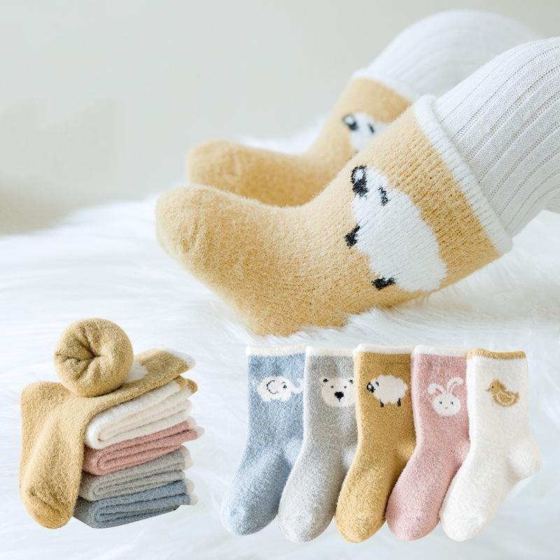 Baby Plush Socks Cartoon Solid Color Newborn Girls Boys Mid Tube Socks Warm Non-slip Floor Sleeping Sock Autumn Winter