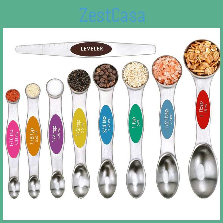 Each spoon in this nine-piece set is designed to meet your diverse measurement needs, whether you're baking mouthwatering cakes, whipping up scrumptious cookies, or seasoning your favorite dishes. The magnetic design ensures that these spoons stick together for easy storage, preventing the hassle of misplacing them amidst your kitchen chaos. The included leveling scraper takes the guesswork out of measuring dry ingredients, ensuring you achieve the perfect balance and consistency in every dish you create.