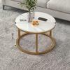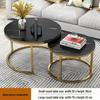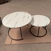 Modern Minimalist Round Coffee Table Set with Stone Pattern and Iron Art Storage