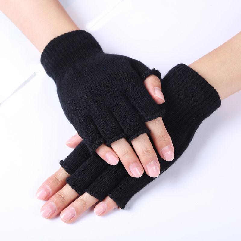 Autumn/Winter Warm Acrylic Knit Half-Finger Solid Color Office Gloves