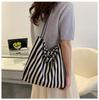 Korean Retro Artistic Striped Shoulder Bag - Large Capacity Fashion Tote