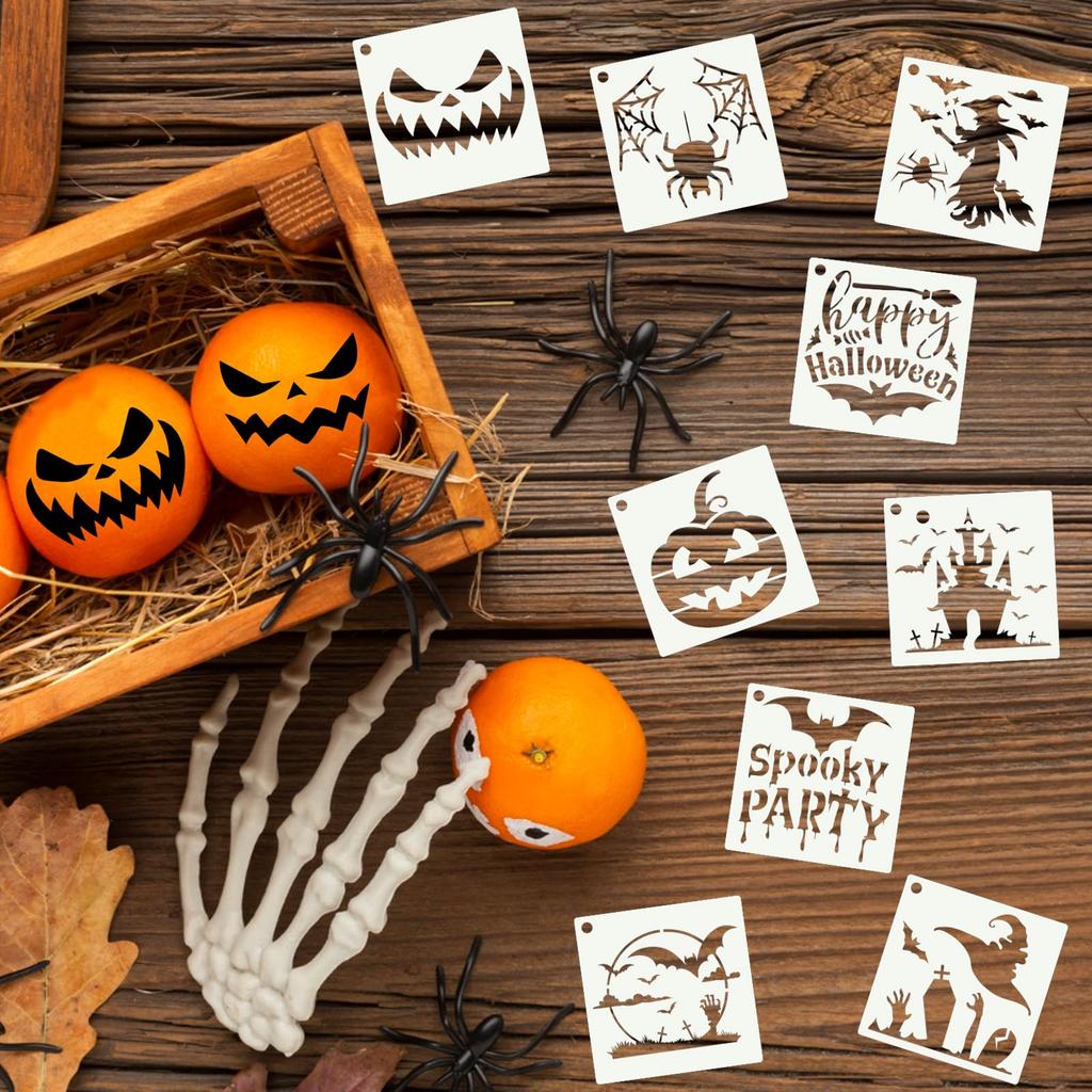 20 Pcs Halloween Stencils Set Reusable Plastic Drawing Spraying Templates for Greeting Cards for Halloween Crafts DIY Decoration
