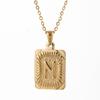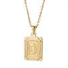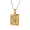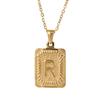 Men's 18K Gold Stainless Steel Square Pendant Necklace with Titanium Steel Uppercase English Letters