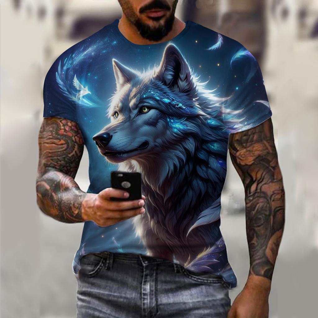 PLUS-size 3D Wolf Beast Print Men and Women Casual Short-sleeved T-shirt Round Neck Fashion Trend Cool Men's Daily New Clothing