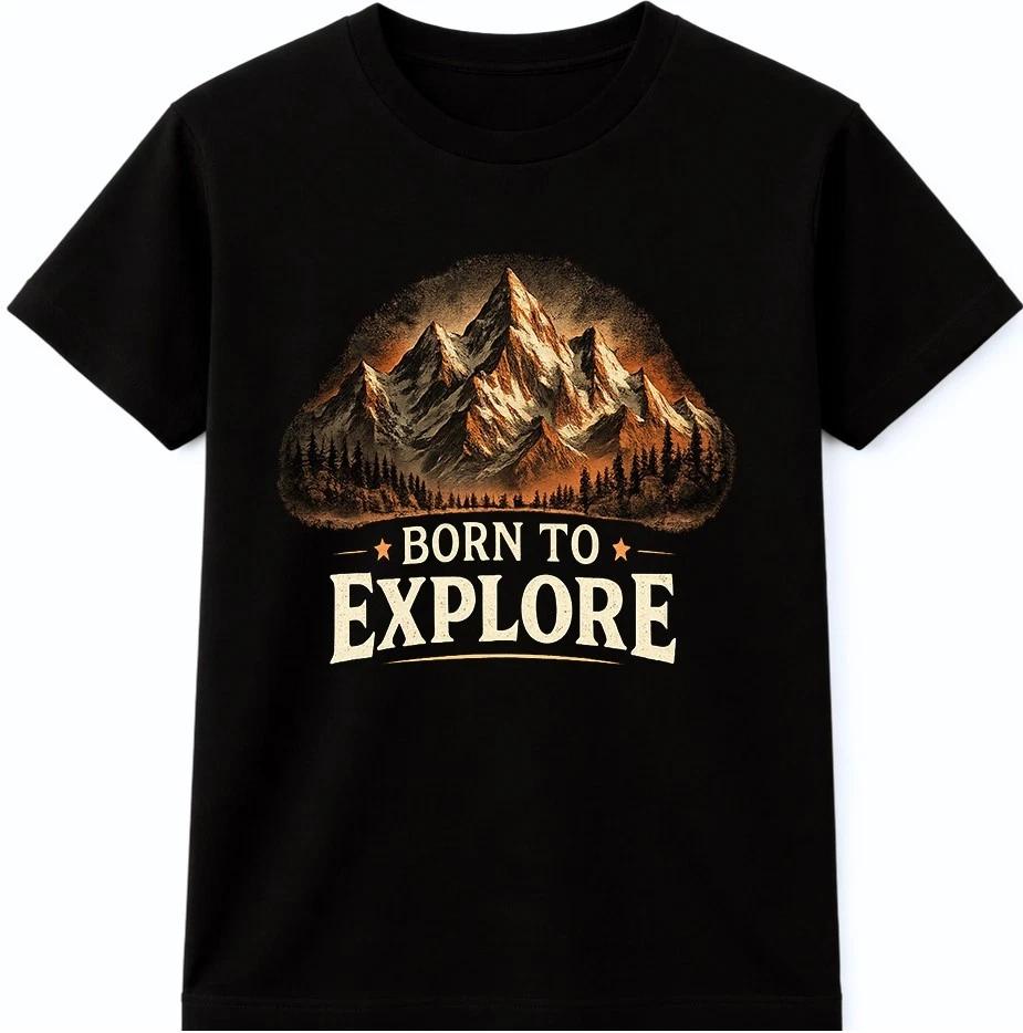 Adventure T Shirt Born To Explore Mountain Graphic Tee Hiking Outdoor Travel Top