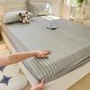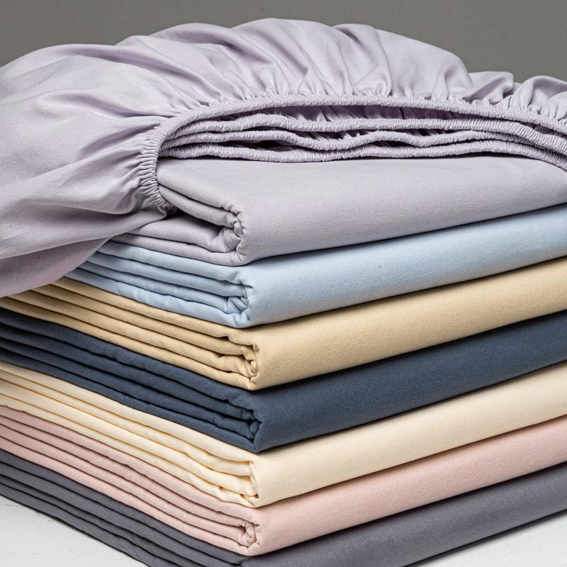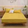 Solid Color Washed Cotton Fitted Sheet with Non-Slip Design and Skin-Friendly Pillowcase
