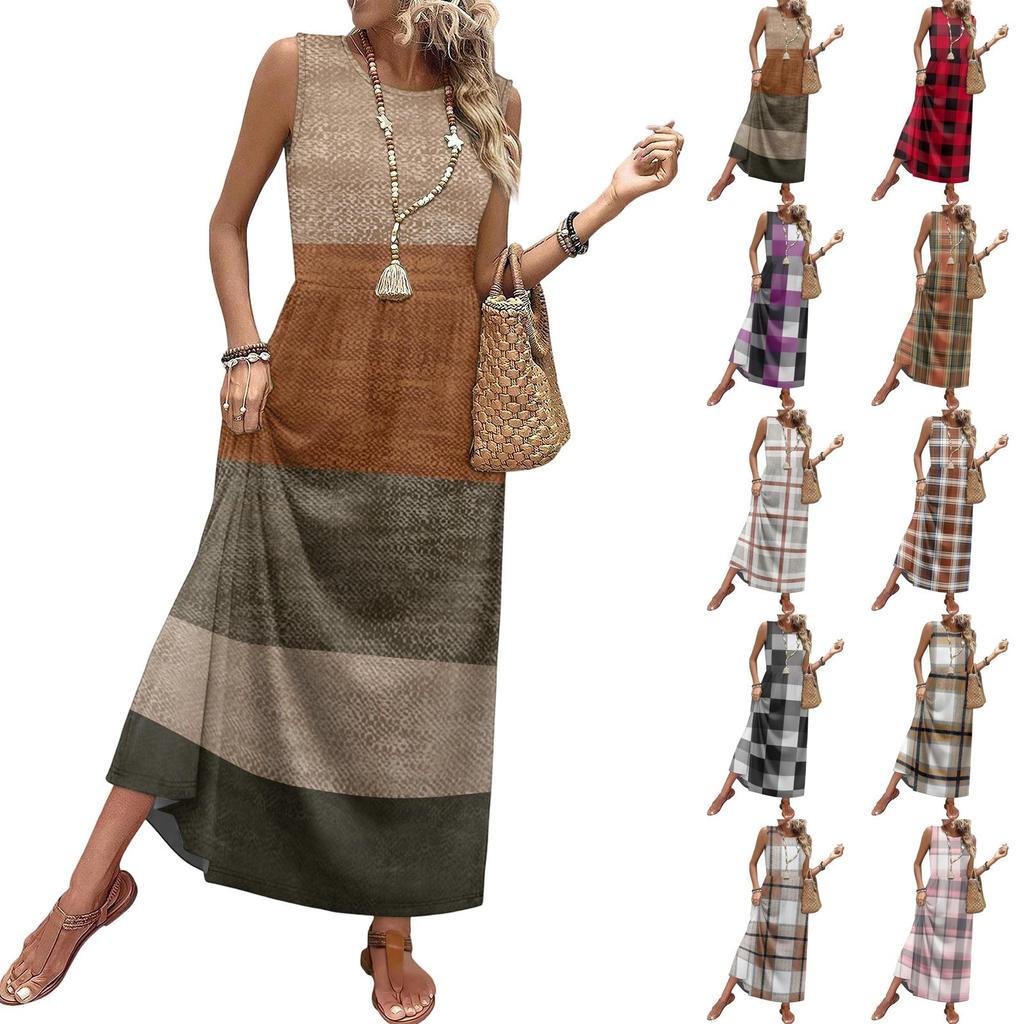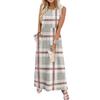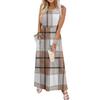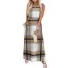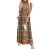 Ladies' Plaid Printed Casual and Fashionable Waist Cinched Sleeveless Dress