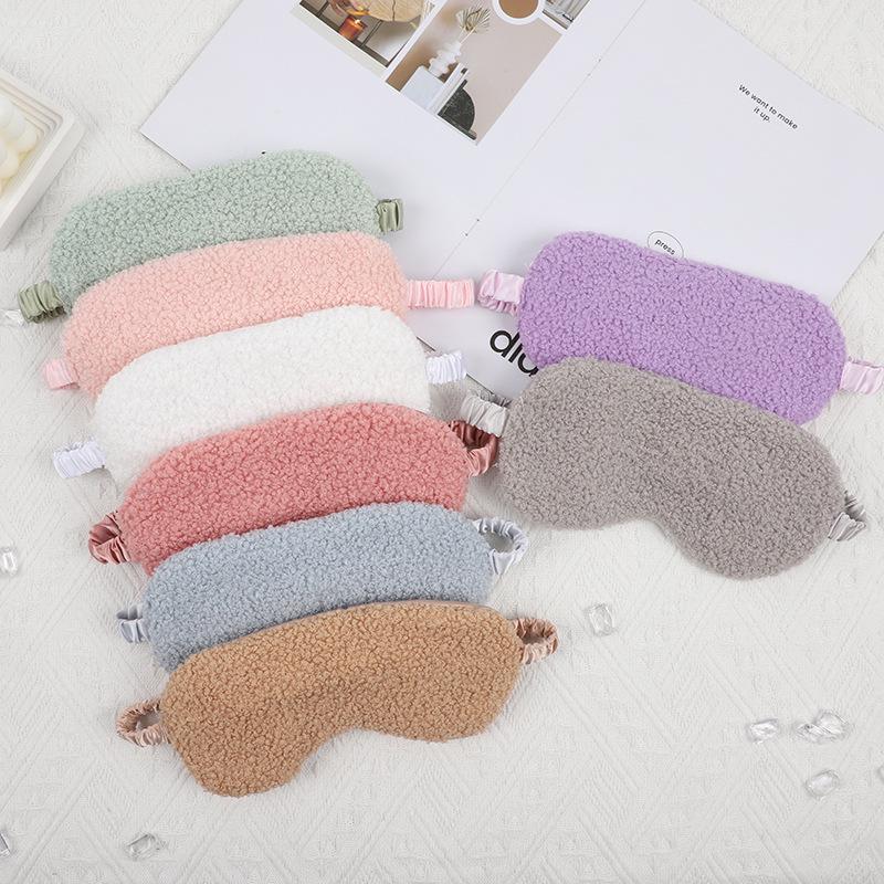 Plush Eye Mask with Elastic Band, Ear-Friendly, Lamb Wool, Solid Color, High-Style Silk Imitation for Napping.
