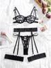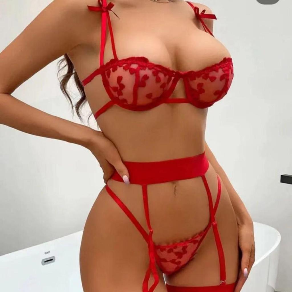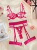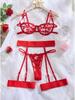 European Valentine's Day Heart Embroidery Lace Lingerie Set