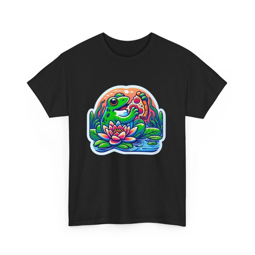 Unisex Adult T Shirt Frog Eating Pizza Water Lily Pond Nature Novelty Animal Tee